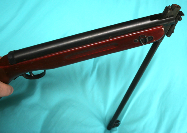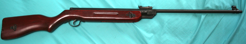 It may seem strange and pretentious to be putting a page about an air rifle on a site section about firearms, but this is not so inappropriate as it may seem. There are some very serious "adult" air guns out there and some very serious competitions being shot with them. The respectability of the air gun has increased in the last few decades, because not all of the world is the United States, and not all adults are free to own fire arms as we are. Citizens of less enlightened countries may be limited to the use of air guns in competitive and recreational shooting, but this does not mean they need to limit themselves to Red Rider carbines, and Daisy 500 shot lever actions. Many of these adult guns are every bit as well made and, within their limits, as accurate as any real fire arm. They lack only the power, and in most cases the rapid fire of a "real" gun. This should not be taken to mean that these guns may be handled without the same care as a firearm. Much small game is taken with them every year, and some begin to touch the lower limits of power generated by firearms. This particular model is a good illustration of how serious air guns can get. The gun is manufactured in communist China as a military rifle. It is, admittedly a practice piece, and is not issued to combat troops, but it is still considered to be a piece of military equipment. This rifle was designed to be about the same size and weight, and have the same balance as the SKS rifle. It is given to members of China's youth brigades, and is used as a preliminary practice piece in the early stages of recruit training in their army. It seems that the Chinese communists are hesitant to allow guns even in the hands of their military. The guns are quiet, and cheap to shoot. Their ownership is rarely restricted for adults, and they can be safely and legally practiced with in the house, with a proper pellet trap. This particular example, launches an 8.5 grain pellet out the muzzle at around 1000 fps. This generates a bit over 20 fp of energy. According to the "velocity is every thing" crowd, the .177 air rifle should be a good man stopper, since it's velocity is higher than that of the .45 or the .38. Of course they would never make such a foolish claim, but this is a good extreme example of the folly of this particular bullet lethality theory. Though this round is hardly a man stopper, it is adequate for some small game and for the ten meter ranges used in competition, it is also very fun to shoot.