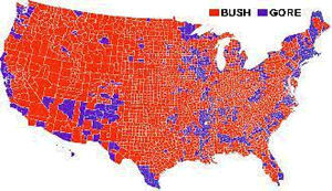 of the race is mimicked by the electoral votes. The fact that Bush took