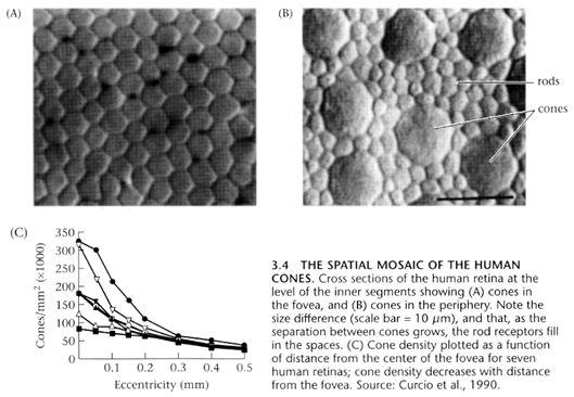 in the center (fovea) of the retina. So concentrated are the cones in the