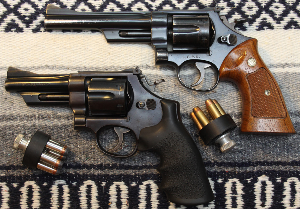 to mind.These guns will take the same holsters as the M-27, or as any of the other N frame models, including the Model 29. They will take the same speed loaders as the M-27. The most common barrel length for the Highway Patrolman seems to have been the four inch, and the most common holstering method was the common belt holster. I personally, own two of these great revolvers, one with a four inch barrel, and one with a six inch barrel. Four Inch M-28