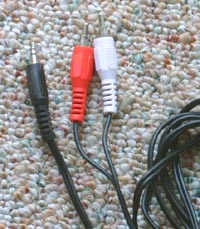 nearly impossible. You don't really even need a special sound card to capture the origonal audio either, though a better card will give you a much better sounding stream. Any sound card can be used for doing digital sampling, with the proper cabling. The standard sound card or on board audio in your computer right now can be connected to a cassette, or with a proper preamp, to a turntable. You can also connect from the liine out on your amplifier, reciever, or av center, to the line in on the sound card. This can all be done through the use of a mini plug to RCA jack converter, which is shown in the photo to the right. These converters are available at most electronics stores, computer places, or stereo shops, as well as some discount stores. They range in price from about ten dollars, to nearly forty dollors, depending upon the length, the make, and the quallity of the wire. I picked up several sets for about ten dollars each. Some after market sound cards will include a set for free. These cables are not limted to be used for connection to standard audio cards. Though the front panel jacks, and breakout boxes are convenient, many high end cards are also connected through the use of adapter cables. I use this type of cable to connect to my casette deck, and to play my computer through my stereo. Audio file types