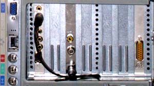 web. Who knows?The only problem with video on the web, as we have all learned through frustrating experience, is that clips with any kind of resolution are maddeningly slow to download. They are also very draining on bandwidth, and I only have 50gb of bandwidth per month, at my current service level, along with 2gb of storage space. This is plenty for my site, as it now stands, but I would quickly find myself running out of bandwidth if I put up video clips. I will just have to wait and see. Back panel connectors include one for direct video, and for a coaxial connection to an antenna or outside RF signal. I had initially had the tuner card installed in my internet computer, and latter in Timbuk2. Neither of these computers had the power to really run the card properly, however, and the experience was rather dissatisfying. The card, and the software were consistently locking up my computer, whenever I attempted to do live video captures. The GX110, with 512mb of ram, and the larger hard drives does a much better job, and the card now runs with no problems. The back panel on my machine is getting to be a pretty busy place, with my video, audio, network and other connections. In addition to my active connections, I still have the connectors for my on board audio, though it has been disabled to permit use of my Sound Blaster Audigy card.