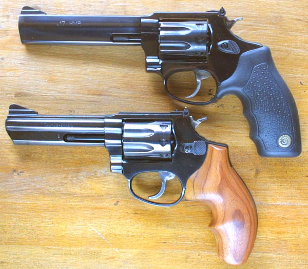 is unbounded.There had been some early rumors of rather poor or uneven quality in the Brazilian guns, similar to those circulated about Spanish made firearms. There was also the aforementioned difficulty about light primer strikes. Taurus wished to enter the U.S. market in a big way; but with it's tarnished reputation, it needed to do something in order to attract buyers. It could have, as had the Spanish companies, lowered prices, making itself a bottom of the line gun company, and having to reduce quality in order to be profitable at a lower price. Instead, at the 1984 SHOT Show, Taurus announced that from that point forward, all Taurus handguns would carry a Lifetime Repair Policy. Such a thing was unheard of, even from first line companies like S&W, and Colt. It did much to instill buyer confidence, and to restore the credibility of the company. In 1989, Taurus bought the Brazilian production facilities of Beretta. This factory had been built as part of a contract to supply hand guns to the Brazilian government. Part of the deal was that manufacture must take place in Brazil. For six years, from 1974, the Sao Paulo factory of Beretta produced M-92 automatics, until the contract ran out. When Taurus took the factory over, it began producing what were essentially genuine Beretta handguns, made in a Beretta factory, by Beretta trained workers. So now Taurus was able to produce a line of automatics, as well as it's traditional line of revolvers. With Beretta line, as well as the S&W line, Taurus could easily have rested on it's laurels, and continued producing these products, as a sort of a clone maker. Numerous computer companies, and not a few firearms manufacturers are doing quite well by following this plan; but Taurus didn't sit still. The Taurus line of semi auto pistols now differs significantly from the mechanics of the Beretta design. In particular, the Taurus has it's safety mounted on the frame, rather than on the slide. This allows cocked and locked carry, something which can not be done with the Beretta. The company has also redesigned the internal lockwork, slightly, on it's revolver line, so that it now significantly differs from that of the Smith. Some shooters lament this, suspecting that cost may have been a factor in the redesign. Others applaud the changes, considering them to be, as is clamed by Taurus, improvements and evolutions in the original Smith design. I will note that the new guns no longer suffer from the intermittent problems of light primer strike, that they all use coil springs, along the lines of the Dan Wesson, and that they have a rather stiff trigger pull out of the box. You will want to make up your own mind about this. One thing is certain, however. Taurus is not a manufacturer of either S&W, or Beretta clones. |