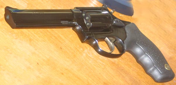 This is a nice sized, comfortably shooting, handy revolver for the sportsman, hiker, camper, or recreational shooter. Though the cost of the rounds (about 20 cents each, as of this writing) does not necessarily make this a plinker, the dynamics of the gun would certainly make it a good choice. This is a fancy way of saying that the gun is fun, and easy to shoot. This would make an excellent kit gun, and unlike the S&W kit gun, it is actually affordable enough that you would not be afraid to consign it to the type of hard life and casual concern to which, by definition, a kit gun is subject. As of late summer of 2005, I paid about $250 for this gun, brand new. This was a good price, but by no means a steal, and the average shooter shouldn't have too much trouble finding the Taurus 17 at a similar price. The fit and finish of the gun are great. The metal is smooth, with a mirror finish. The deep blue is uniform, and almost looks black. The ergonomically designed grips take the form of a reverse wedge, with finger cut outs, and are of pebble grained black rubber, with a Taurus logo medallion near the bottom. The barrel is completely underlugged, with a sort of a triangular cross section, like that on the Raging Bull. The front of the barrel, along with the underlug, is radiused, like that of the Colt Detective Special, or the old High Standard Sentinel MkIV. Though this is probably a bit of a vanity feature, I suspect that the radiused barrel is responsible for the sale of many a Detective Special. The crown of the barrel is slightly recessed, making it an unlikely recipient of damage from rough handling. All and all, the gun is very handsome appearing. Nickel, and stainless versions are also available.
