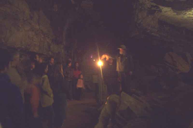 light sources have been put away. Our ranger guide, lights a single lantern,
