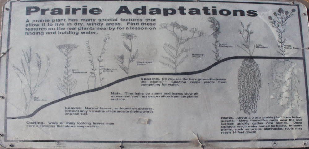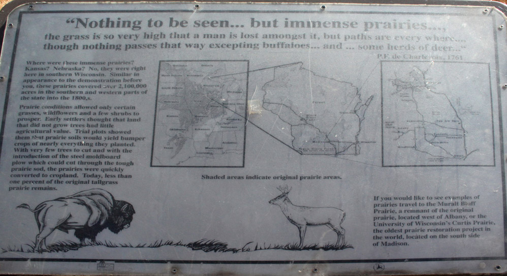 In an effort to provide glimpses of local culture, and add a bit of interest, most stops have commemorative or memorial plaques. many have both This particular stop commemorates the early industry of the area and adds a bit of local history. There is also a memorial dedicated to the Wisconsin veterans of the Civil War. As a general rule, the memorials of each stop are unique to the stop, but the Janesville stop is one of several, part of a series designating this to be part of the Wisconsin Veterans Memorial Highway, which commemorates Wisconsin Civil War veterans. In addition to memorials and commemoratives, rest areas all feature portions set aside and allowed to grow wild. They generally have what they call demonstration plots, which are planted in a style similar to what grew here before the area was settled and farmed. Another display indicates the impression that the wide open prairies made upon the explorers and settlers that passed through the area. The display advises that at one time the area abounded with buffalo and elk. In many ways, these areas are like little miniature parks, complete with picnic areas, interpretive displays, nature exhibits, and a building for shelter. |