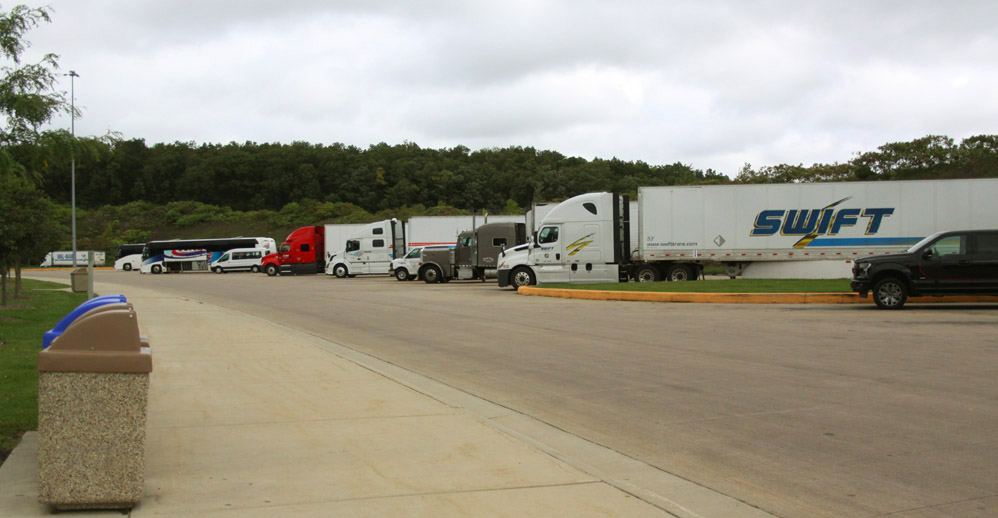 For automobiles, there are two parking areas adjacent to the freeway. This is angle parking, and sits right in front of the pavilion. The inner lot gives easy access, while the outer lot by the freeway takes up the overflow. The automobile area is far busier and more transient than While this is a rest area, and exists to prevent the danger of over tired drivers on the road, there are some limits. The limits are necessary to keep the facility available to those that need it. Most are a matter of simple common sense. Many are also the result fo federal regulations that define what services may be offered on federally funded highways. While there are picnic areas, camping here is strictly prohibited. This is in part to keep the parking and recreational areas open and free of campers, it is Needless to say, hunting is not permitted on or from these areas. Geocaching is also not allowed, and is treated as littering. So in addition to not being campgrounds, these are also not really recreational areas. The state tries to tread that fine line between allowed these to be areas to be used for multiple purposes, and restricting them so that they may be preserved for their primary function. At the same time, they must keep in mind the Like the freeways they serve, these lots are slabs of concrete rather than the asphalt or gravel of a typical parking lot. These are generally considered safe, far safer than the streets of most cities, and are regularly patrolled and monitored. This particular stop is also quite busy, so a fatigued traveler taking a snooze is unlikely to ever be isolated here. Overnight parking here, as well as sleeping are looked down upon, but are permitted as long as the 24 hour limit is not exceeded. While these spots are not meant to be campgrounds, safety is the top concerns, and I have never heard of anyone being harassed for sleeping here. Nobody wants tired drivers on the road. |