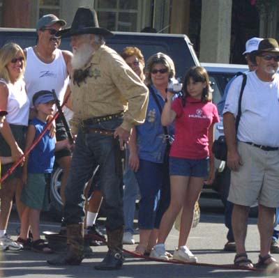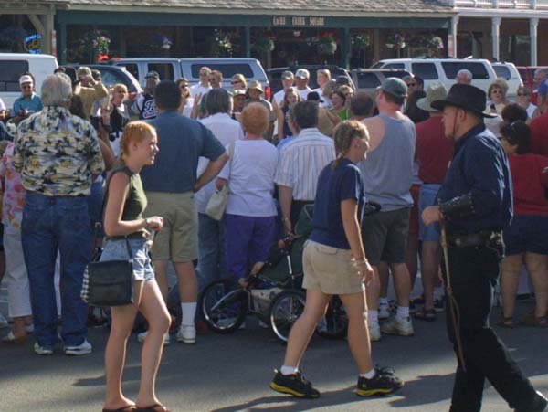 With a sufficient crowd gathered, the sheriff goes about his business,