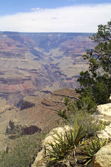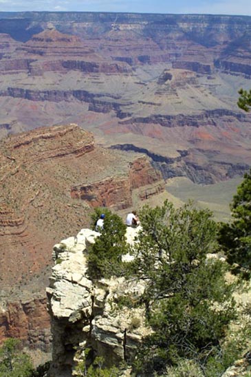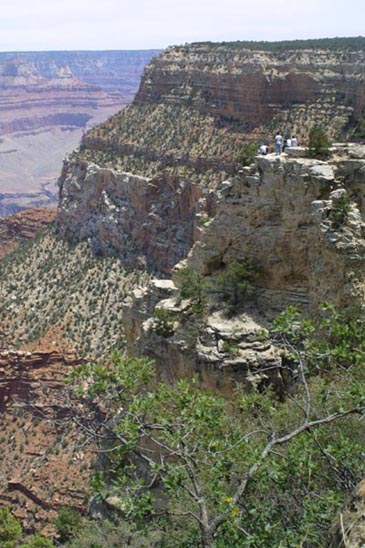 A cliff in the foreground is part of the canyon rim. many equally