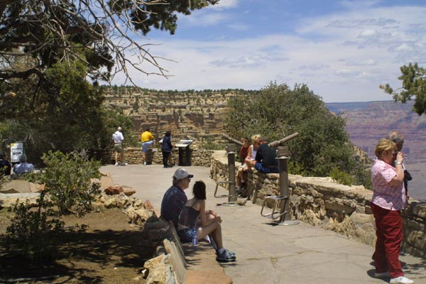 | Tourists at the edge of the canyon, in one of the many rest stops, and scenic overlooks. | |
