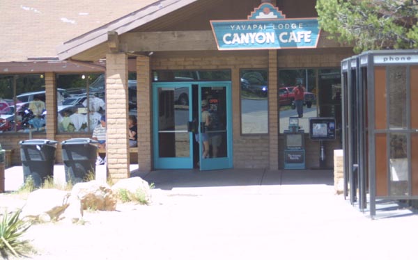 | The Canyon Cafe, attached to the Yavapai Lodge. The cafe was nice and had reasonable prices (unlike the super market in Canyon Village). The rooms were very comfortable. Ours were not in this building, but were in satellite structures up the road. They were comfortable, and modern, not at all "rustic". We even had cable T.V., though I am happy to say, we made little use of it. | |