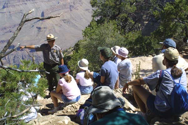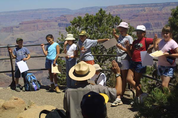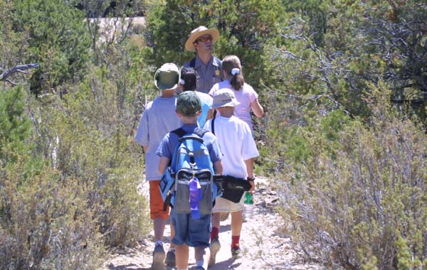 A bunch of junior rangers, being taken on an interpretive walk. The program is for 9 to 14 year olds, though there are also programs for younger rangers (as young as 6).