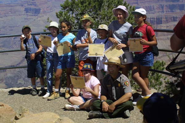 This is what you get after passing the rigorous program of junior ranger training. After being sworn in, a diploma and badge, as well as mention (and a photograph) on the junior ranger section of the Grand Canyon web site.