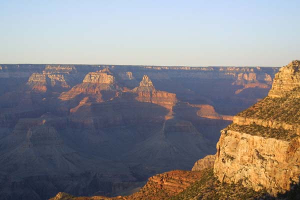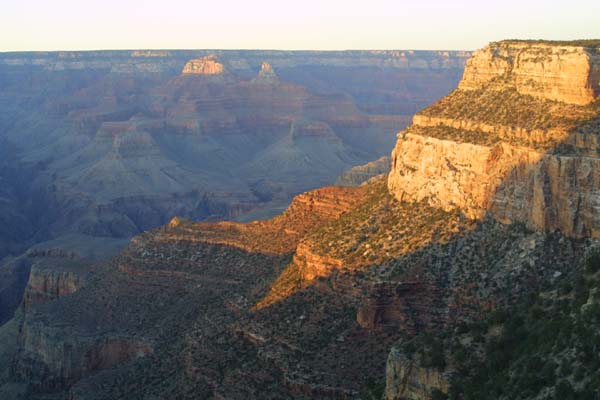 The lower areas of the canyon are now in shadow, giving hikers and