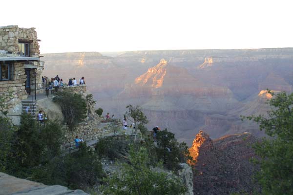 Observers on the lower deck gawk at the changes the setting sun makes