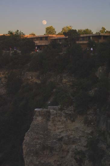 The moon rises over the top of the canyon's finest hotel. |