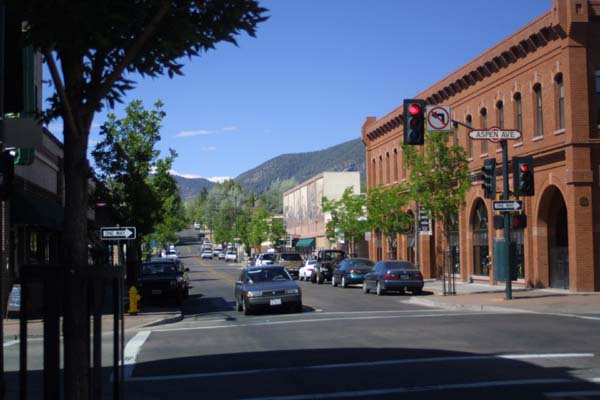 | Stereotypical main street of a busy mountain town. | |
