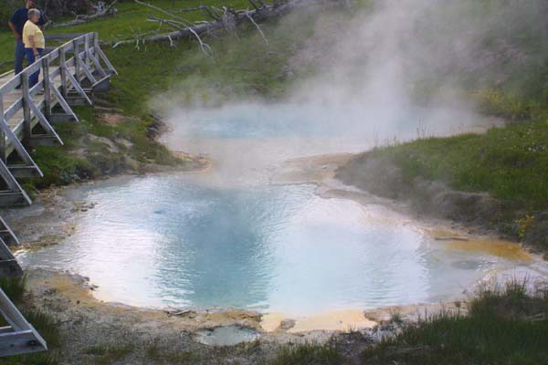 the West Thumb Geyser Basin. Note the sterile soil, and the walkway built