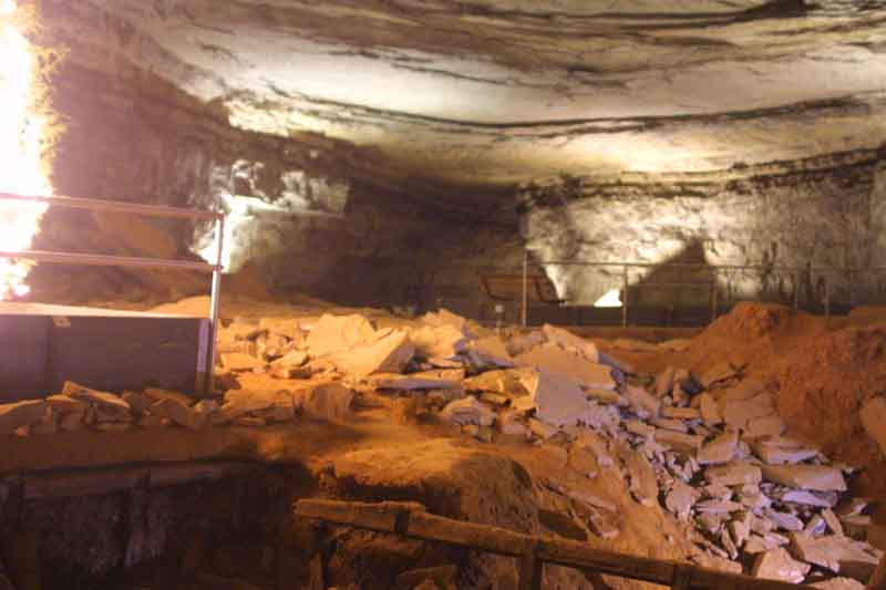 ceilings in most of the cave are a result of a rock shield, overhanging much