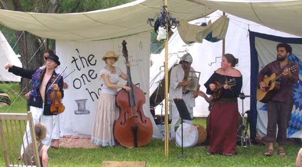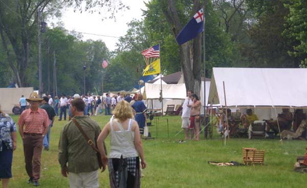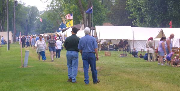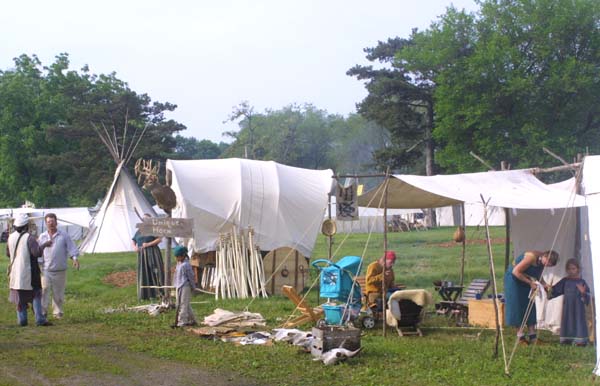 | A side street of sorts is formed by a row of tents serving as living quarters. In order to keep the piece, the areas are zoned into business and living areas so that the commercial traffic does not disturb those living on the grounds. | |