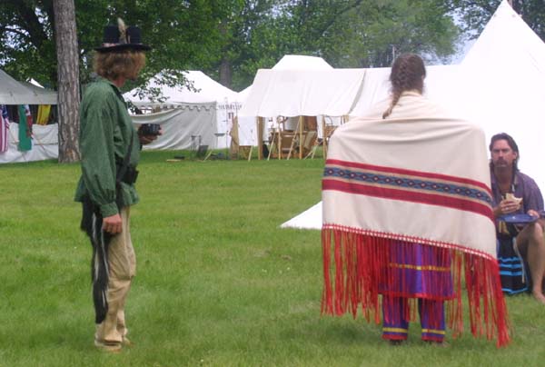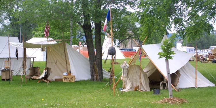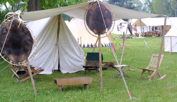 | Some of the camp sites could be pretty elaborate. This one features a mixture of Indian, French, and English elements which is probably pretty representative of how men lived back in those times. | |