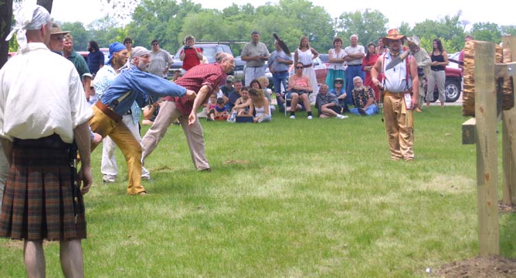 Getting ready for the knife and hatchet throwing competition. |