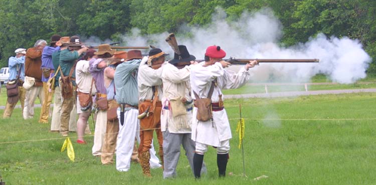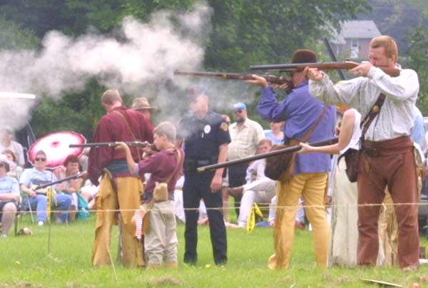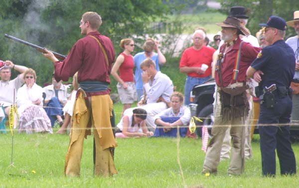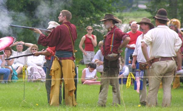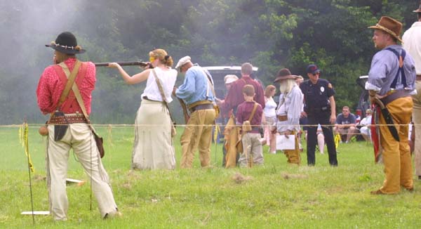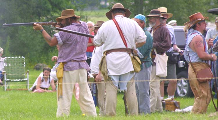 on the firing line and shoot. Several women, in period costumes, also attended.
