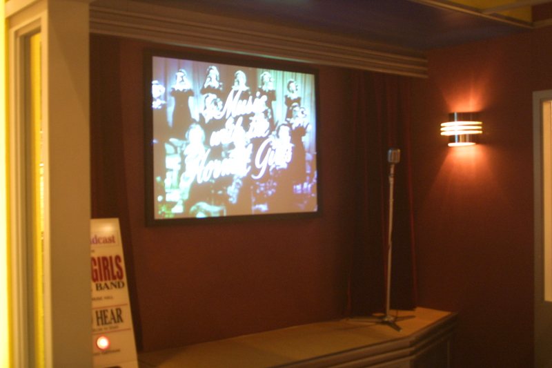| ABOVE: The marquee of the KSPAM radio station. LEFT: The Kspam theater, where you can see endless loops of forties performances by the Hormel Girls. |