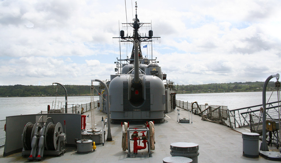 the forward gun, while the photo above looks forward from the