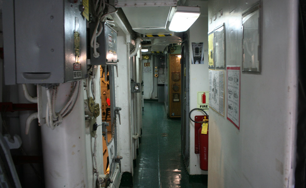 A hallway (companionway) on the main deck. Note how narrow